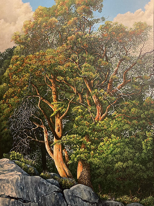 I’ve always found the beautiful Pacific Madrona an irresistable subject for painting. The sinewy limbs and fleshy tones are very expressive and exciting to paint, much like figurative work. This image is from our own Chuckanut shore, Clayton beach to be specific, one of my favourite local spots. It is a great place to walk the beach at low tide where you can look up on the cliff tops to see scenes like this. This painting will hang in Chuckanut Bay Gallery in January along with another new piece pictured below.